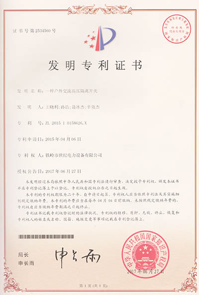 發(fā)明專(zhuān)利證書(shū)